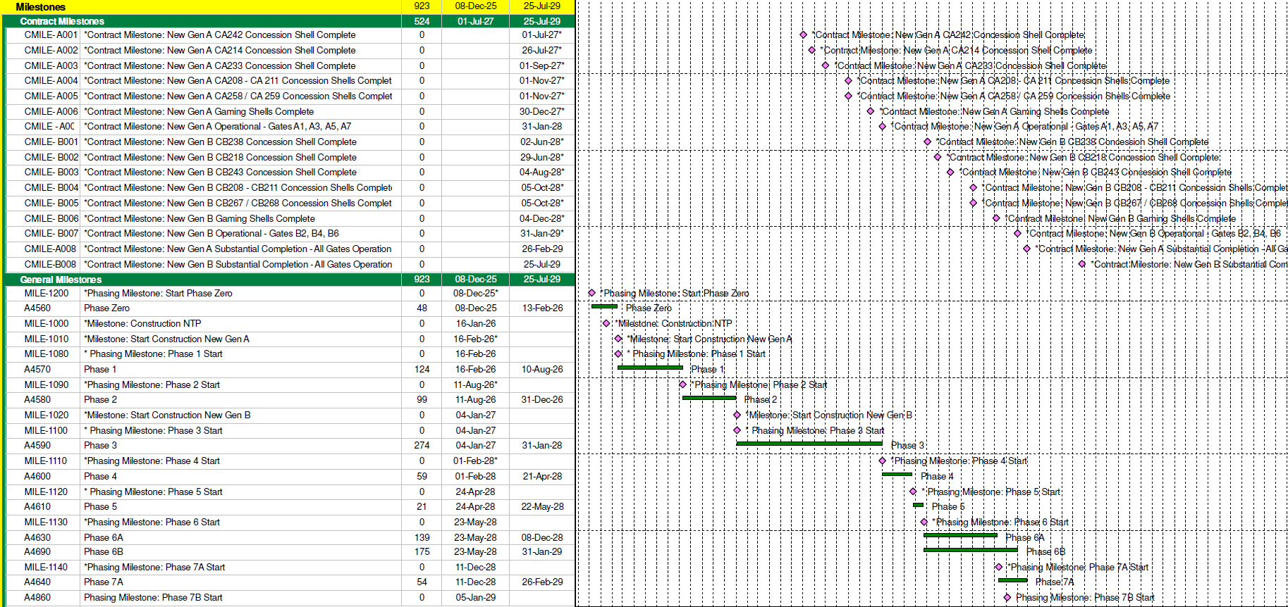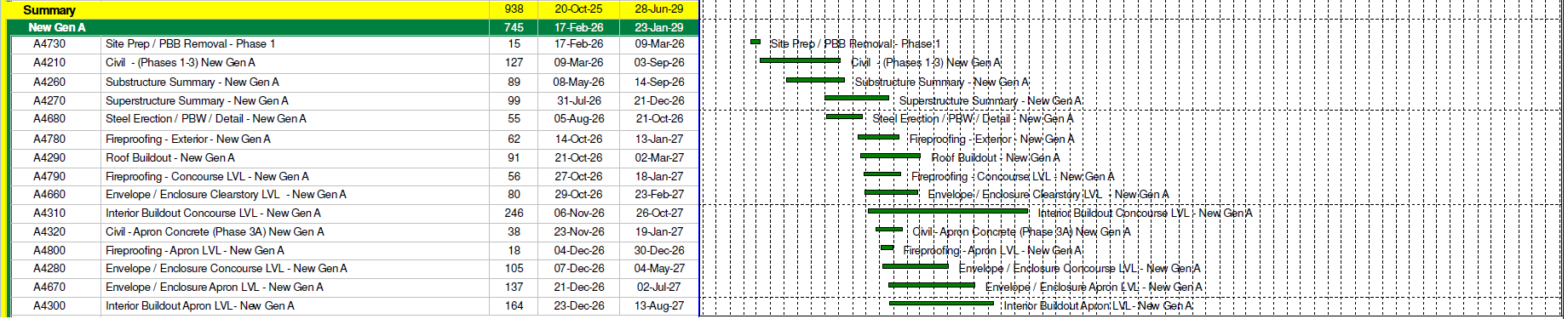 | Civil – Apron Concrete (Phase 4) New Gen B | 7/7/2027 | 7/20/2027 |