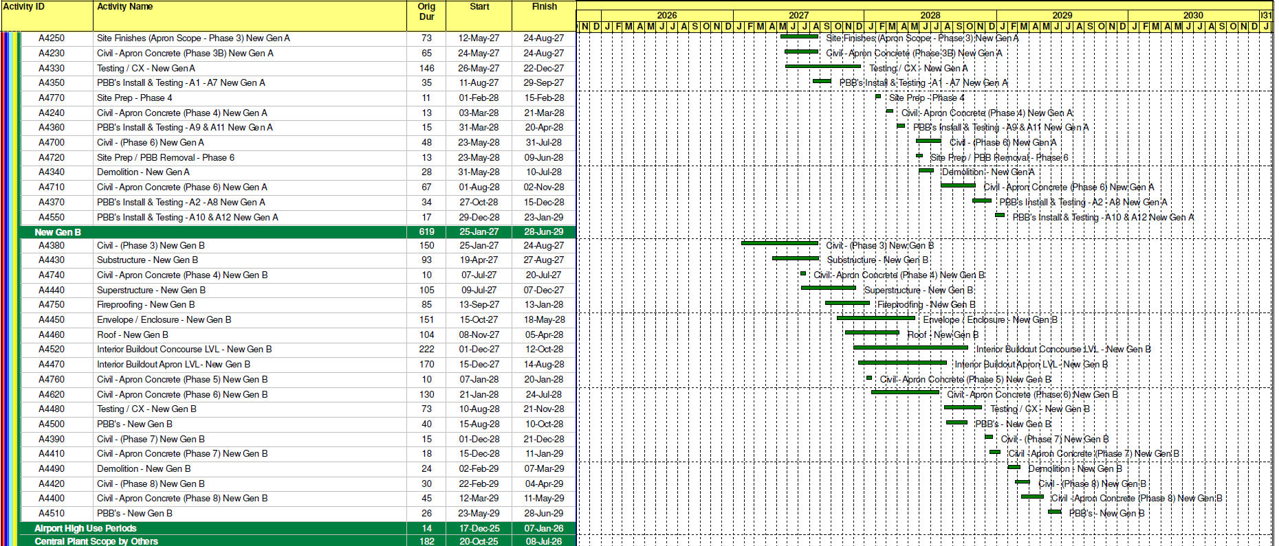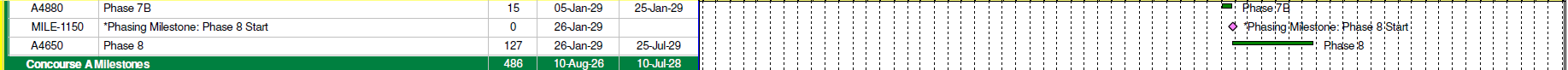 | Civil – Apron Concrete (Phase 8) New Gen B | 3/12/2029 | 5/11/2029 |